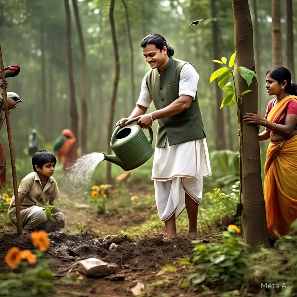 Planting trees, reducing pollution, and promoting eco-friendly practices.